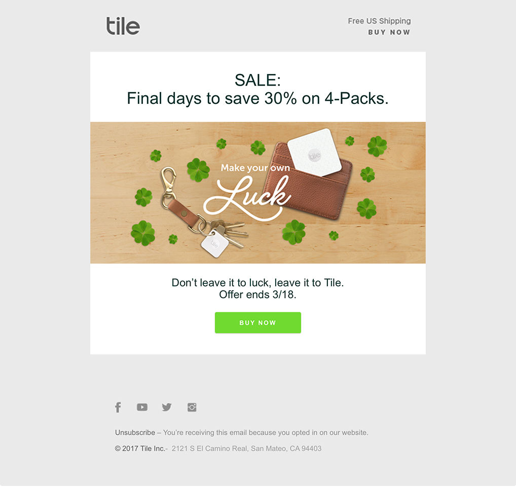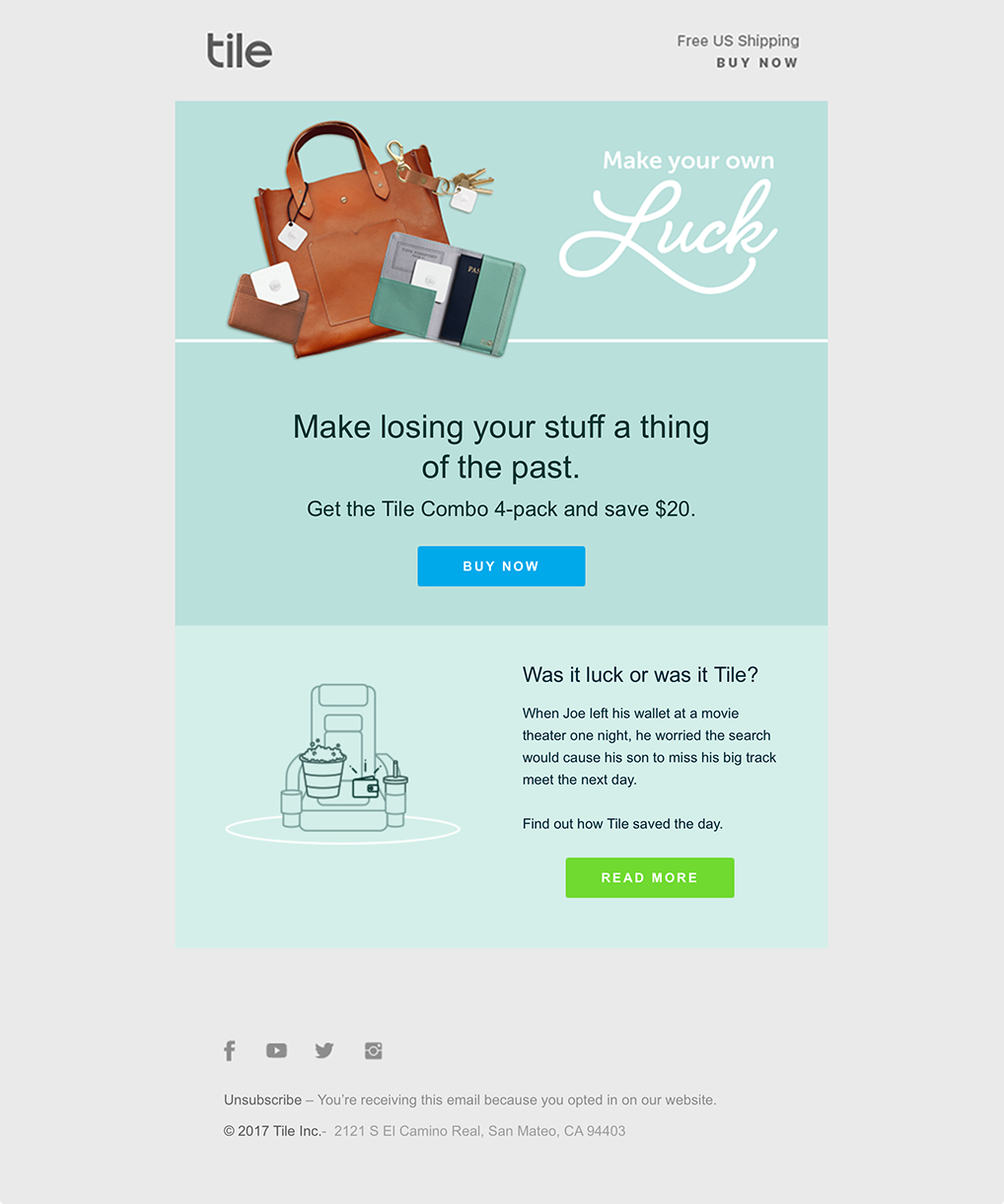 Inspired by the user stories we planned to promote in the St. Patrick’s Day “Make Your Own Luck” campaign, we designed new contextual illustrations to support features in the email series. We repurposed notable icons from Tile's existing set, like the 'Community Find' and 'Ring It' icons, to set the stage for these stories where Tile was the real lucky charm.
